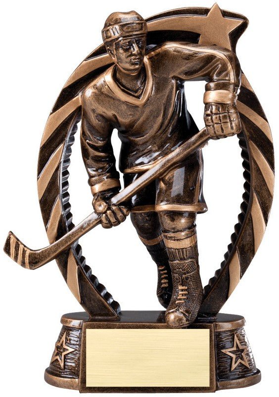 Btonze And Gold Star Hockey, Male Award On Antique Bronze Finish Base