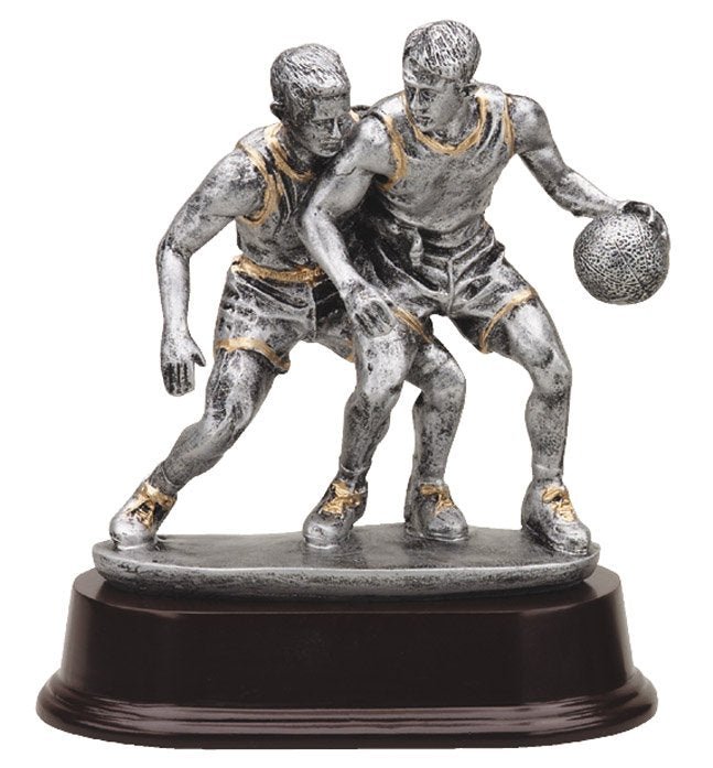 An Elegant Pewter And Gold Basketball Sport Award On Dark Finish Base With Room For An Engraving Plate