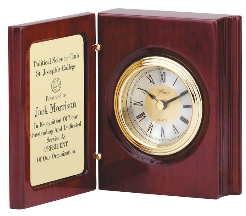 An Elegant Rosewood Finish Clock Designed As A Hinged Book, Individually Boxed