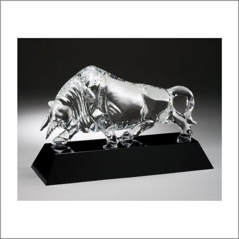 An Elegant Clear Crystal Bull On Black Base Including Deluxe Velour Lined Presentation Box