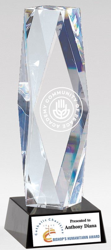 Elegant Clear Multi Facet Crystal Award. Laserable. Packed in Velour Lined Presentation Box