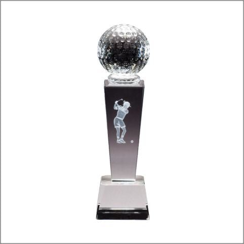 Collegiate Sport Crystal Awards With Individual Golf , Female Player With Matching Clear Crystal Base. Includes Deluxe Velour Lined Presentation Box