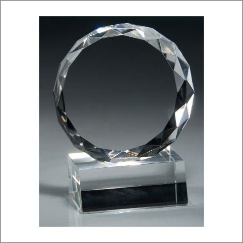 A Faceted Crystal Circle On Crystal Base. Laserable With Deluxe Velour Lined Presentation Box
