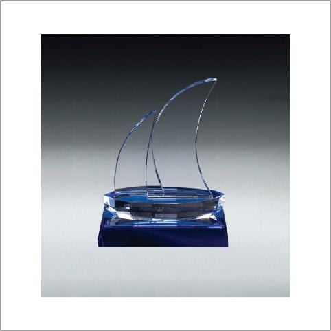 An Elegant Sapphire Crystal Sailboard Award, Mounted On Matching Sapphire Crystal Base, Fully Lawerable Including Deluxe Velour Lined Presentation Box