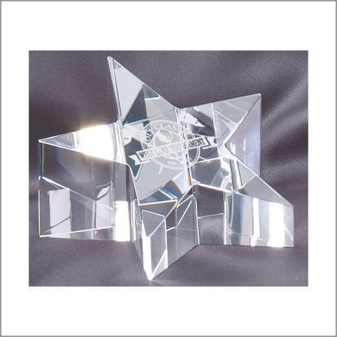 An Elegant 5-Point Clear Crystal Star, Perfect For Desktop, Fully Laser And Rotary Engravable. Includes A Deluxe Velour Lined Presentation Box