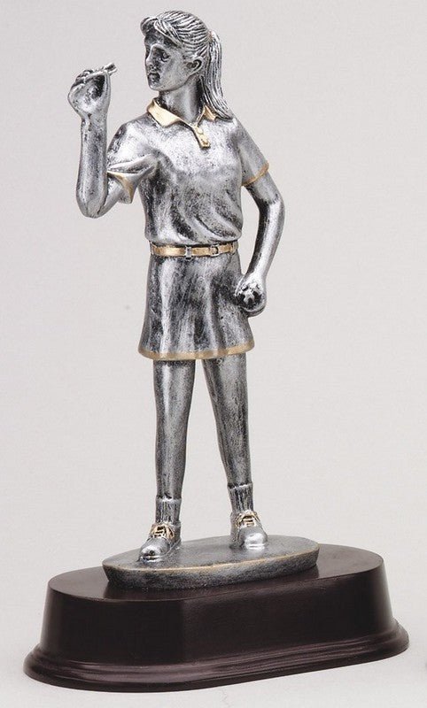 An Elegant Pewter And Gold Darts, Female Sport Award On Dark Finish Base With Room For An Engraving Plate