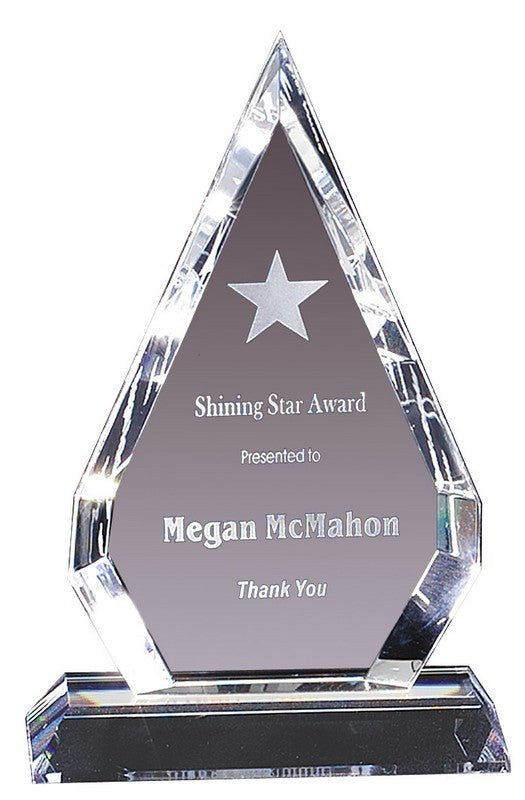 An Elegant Arrowhead Crystal Award With Brilliantly Beveled Edge, Matching Laserable Base And Deluxe Velour Lined Presentation Box