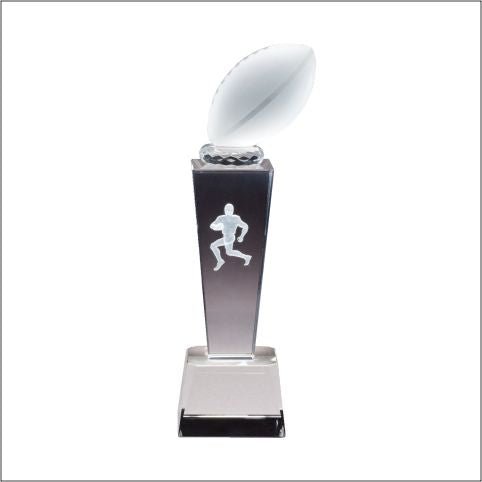 An Elegant And Affordable Crystal Football Sport Award With 3-D Lasered Profile Of Sport Figure And Frosted Football Top. Includes A Deluxe Velour Lined Presentation Box