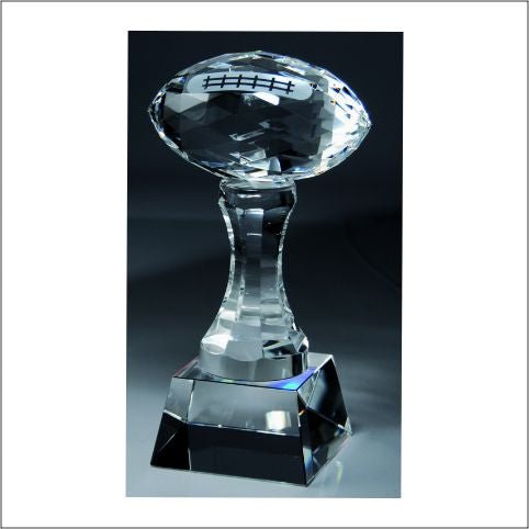 A Frosted Football On Sculpted Prism Pedestal And Clear Crystal Base, Fully Laser And Rotary Engravable