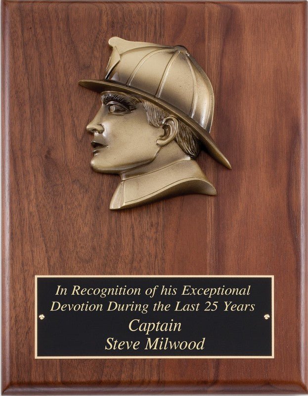 Genuine Walnut Plaque with Fireman Silhouette Casting