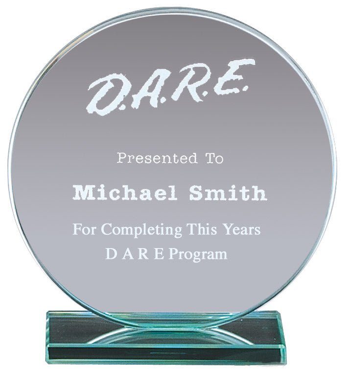 An Elegant Jade Glass Circle Award On Matching Jade Base