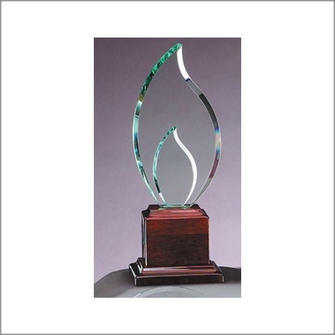 An Elegant Double Glass Flame On Rosewood Finish Base. Able To Be Engraved