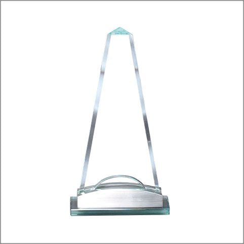An Elegant Glass Pinnacle On Matching Glass Base With Aluminum Accents. Able To Be Engraved.