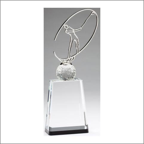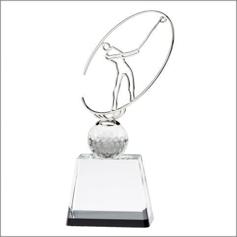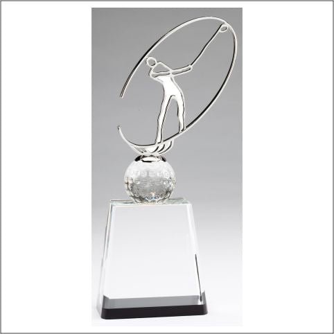 An elegant clear Crystal Golf award with 3-D Golfer embedded inside the Crystal. Includes a Gift Box