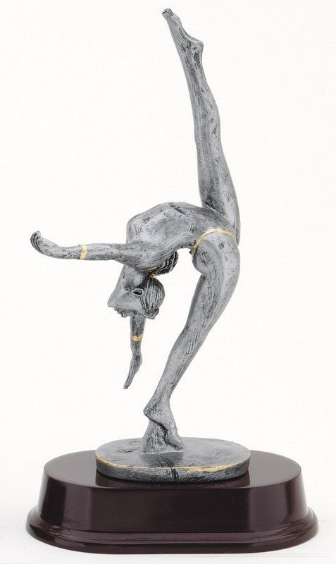 An Elegant Pewter And Gold Gymnastics, Female Sport Award On Dark Finish Base With Room For An Engraving Plate With Room For An Engraving Plate