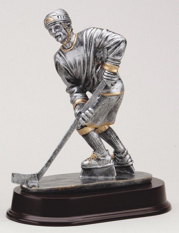 An Elegant Pewter And Gold Ice Hockey, Male Sport Award On Dark Finish Base With Room For An Engraving Plate With Room For An Engraving Plate
