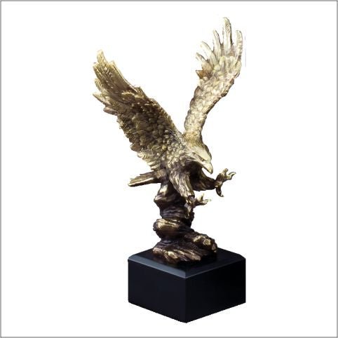 Elegant Antique Gold Eagle In-Flight,Ready To Land Mounted On Black Finish Base