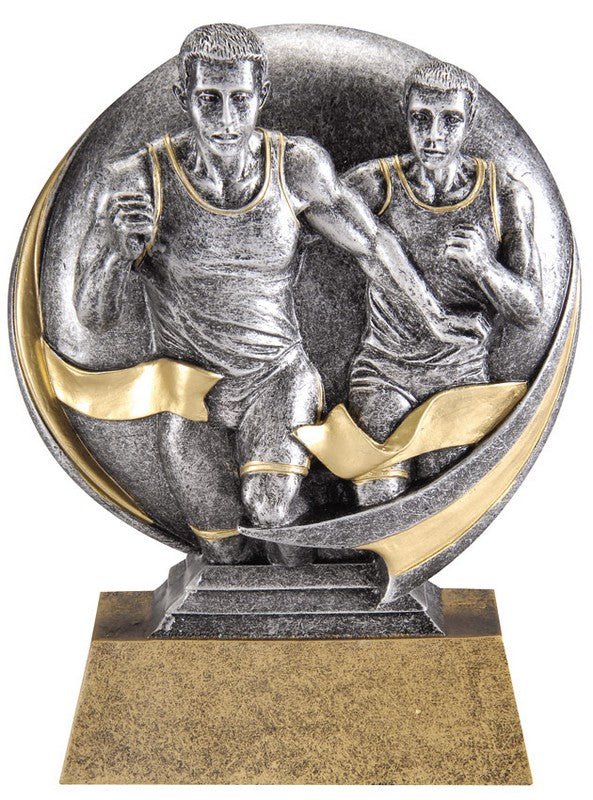 An Action 3-D Pewter And Gold Sport Scene With Track, Male, On Bronze Base With Room For An Engraving Plate
