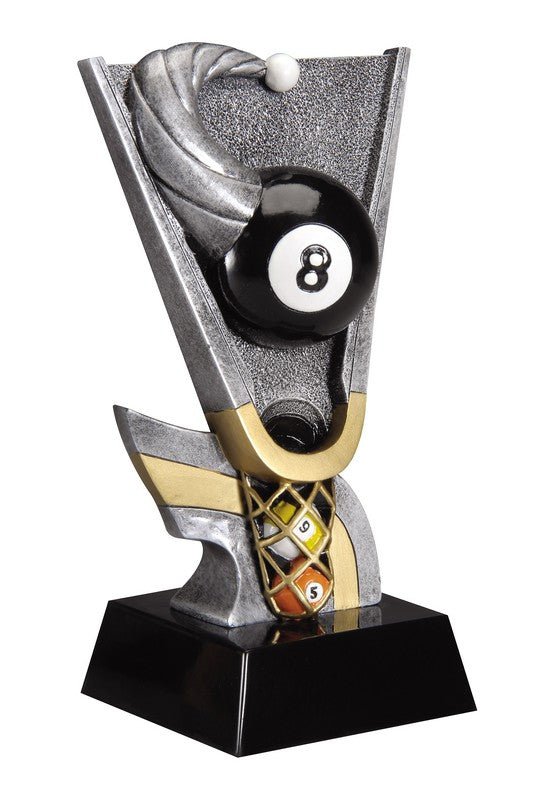 Action Swoosh Pewter And Gold Billiards/Pool Figure With Full Color Sport Icon On Black Finish Base