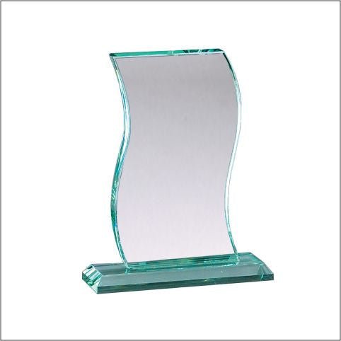 An Elegant Jade Glass Wave Award On Matching Jade Base