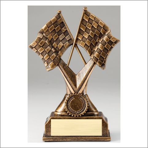 Premium Scultped Antique Gold Resin Trophy -Checkered Flags