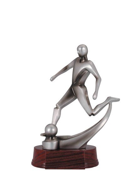 Classic Sculpted Soccer Kicker Resin Figure on Rosewood Finish Base