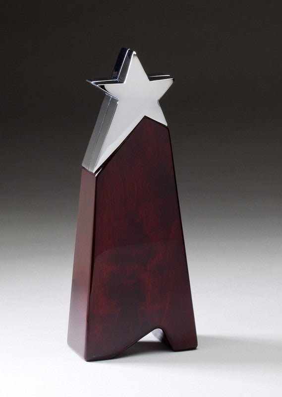 An Elegant Silver Finish Star Award On Rosewood Piano Finish Pyramid With Room For An Engraving Plate