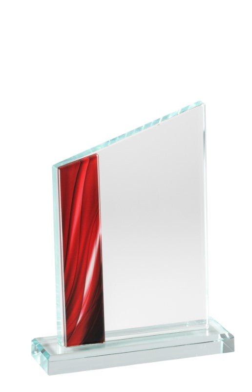 Elegant Angled Glass Award with Ruby Swirl Accent, Individually Boxed, Laserable