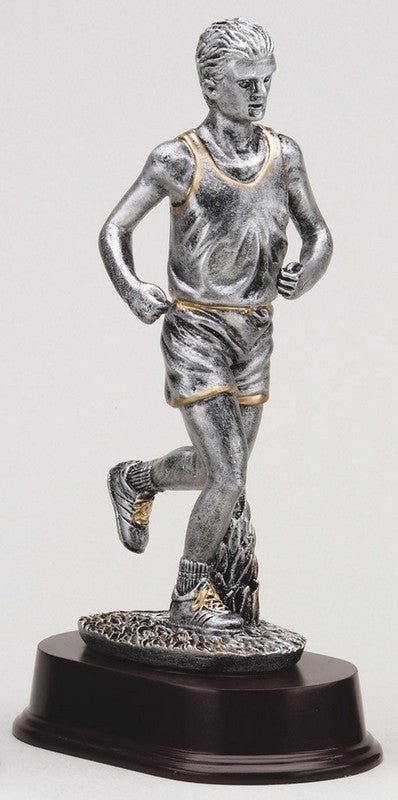 An Elegant Pewter And Gold Runner, Male Sport Award On Dark Finish Base With Room For An Engraving Plate