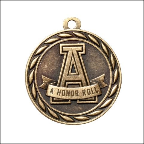 SCHOLASTIC A-HONOR ROLL Antique Gold Medal