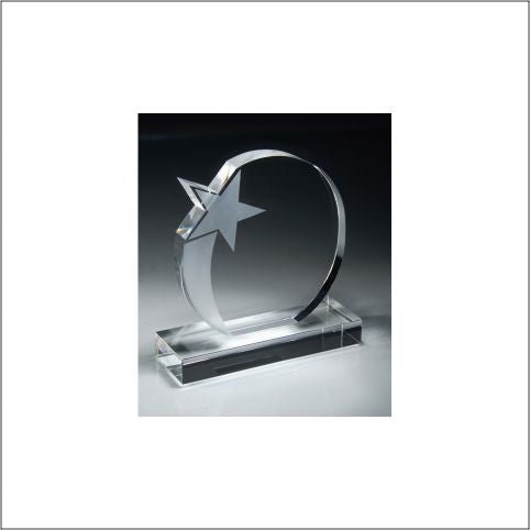 An Elegant Crystal Shooting Frosted Star Award, Matching Crystal Laserable Base With Deluxe Velour Lined Presentation Box