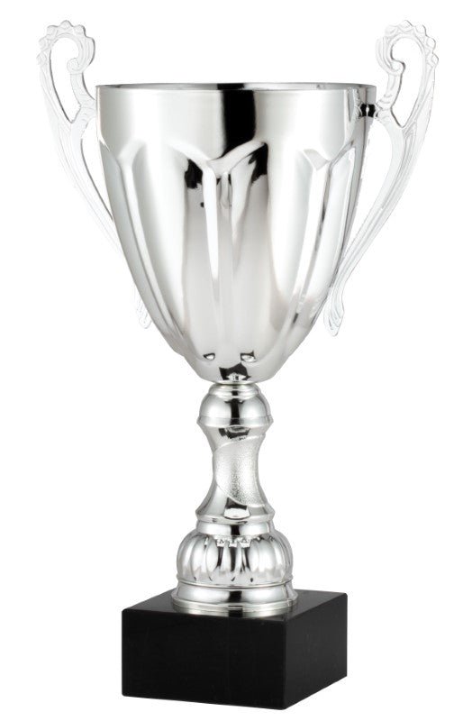 This elegant cup is part of our Promo Line, which gives you a high end look at a budget friendly price. The silver metal cup sits on a plastic stem and is mounted to a genuine marble base. It is available in five sizes.