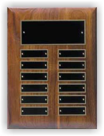 Solid American Walnut Perpetual Corporate Plaque with Black Header and 12 matching Individual Plates