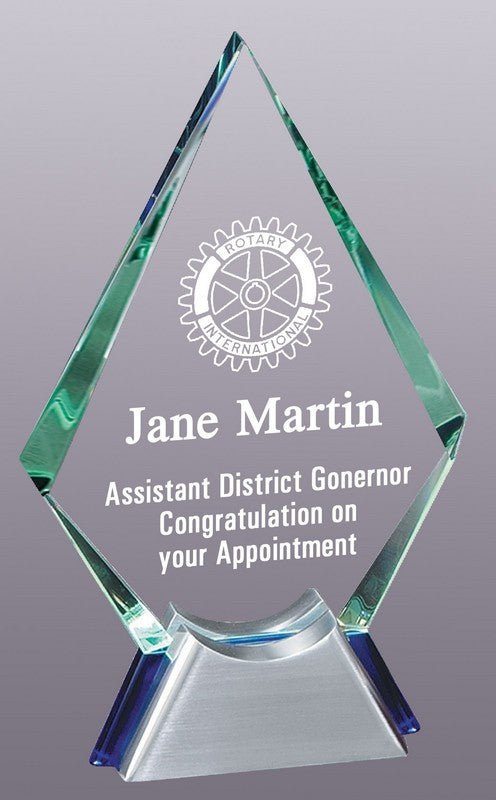An Elegant Glass Jade Spear Award On Blue Aluminum Base
