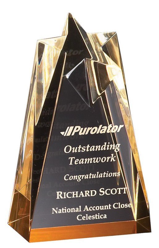 Elegant Star Series Reflective Acrylic Amber Award. Laserable. Individually Boxed