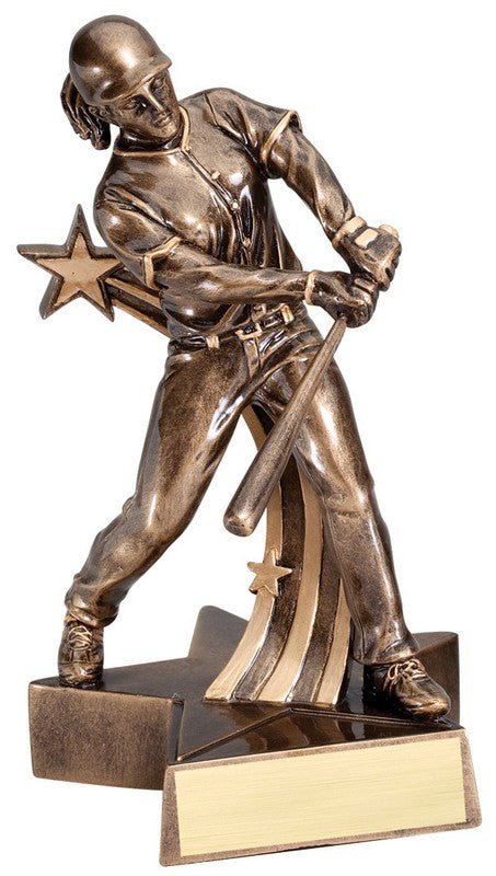 Action Super Star Bronze And Gold Finish Softball, Female On Matching Swoosh Star Base With Room For An Engraving Plate