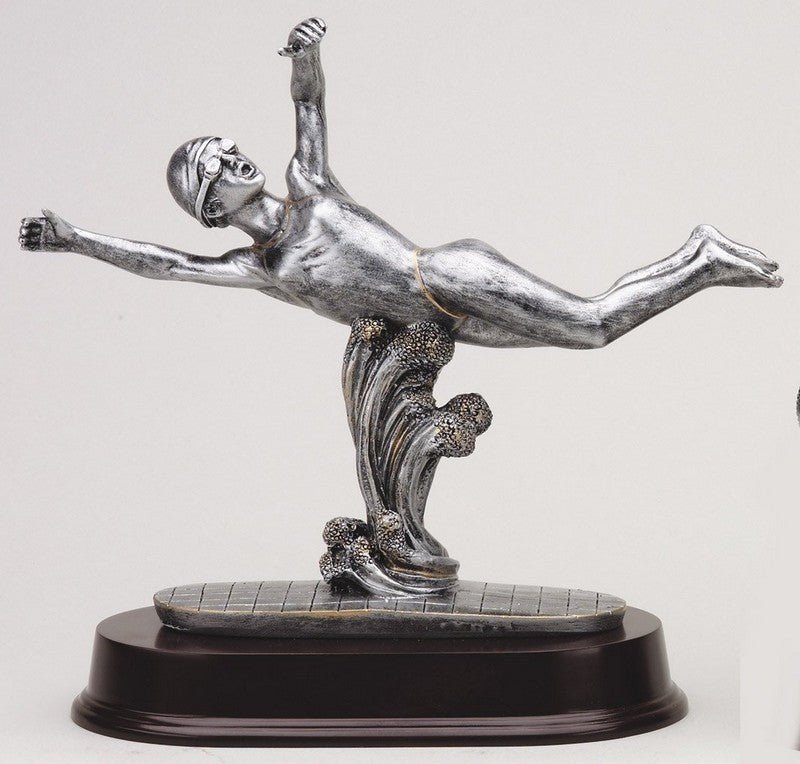 An Elegant Pewter And Gold Swim, Female Sport Award On Dark Finish Base With Room For An Engraving Plate